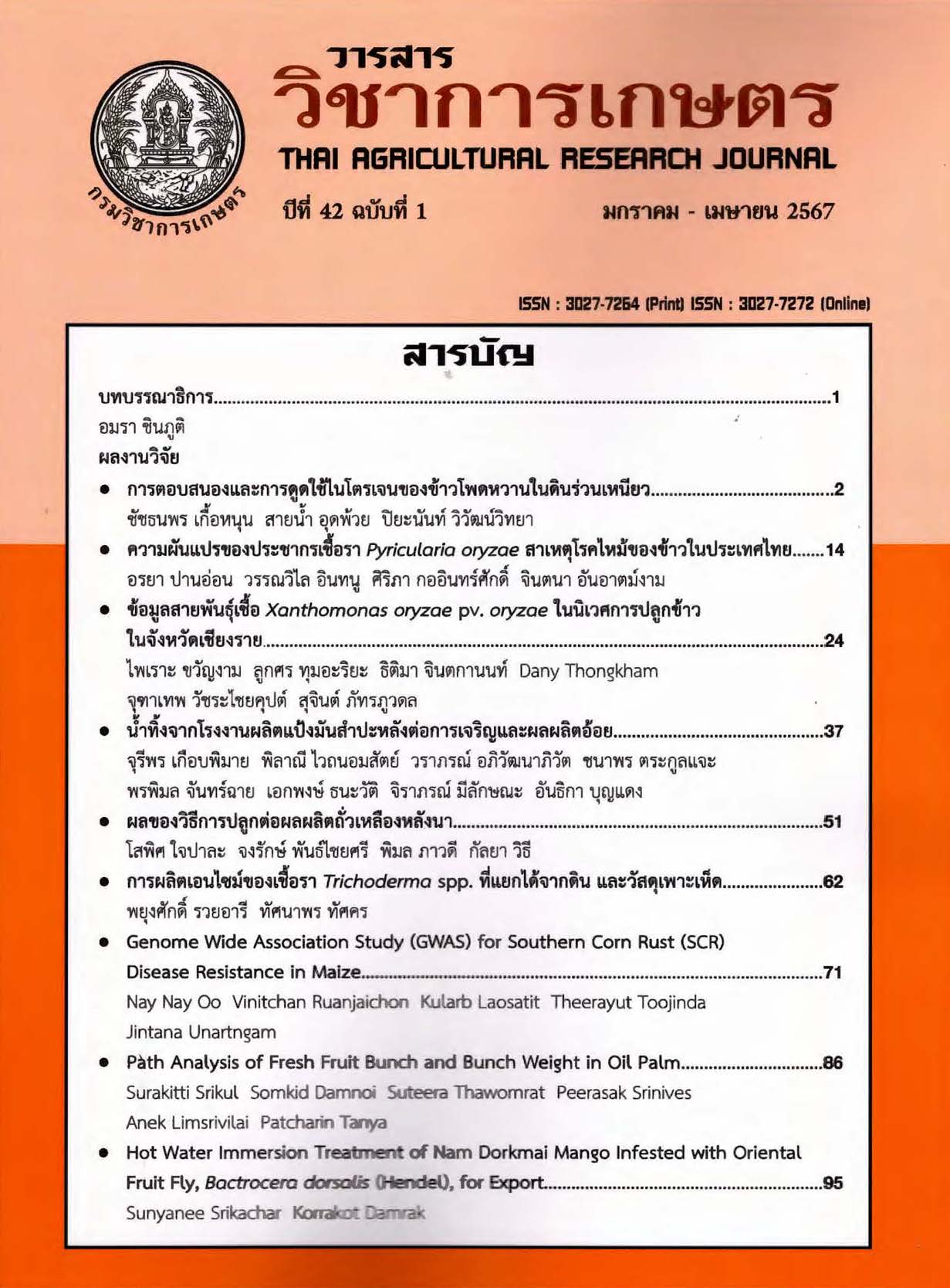 การผลิตเอนไซม์ของเชื้อรา Trichoderma spp. ที่แยกได้จากดิน และวัสดุเพาะเห็ด/ พยุงศักดิ์ รวยอารี และ ทัศนาพร ทัศคร