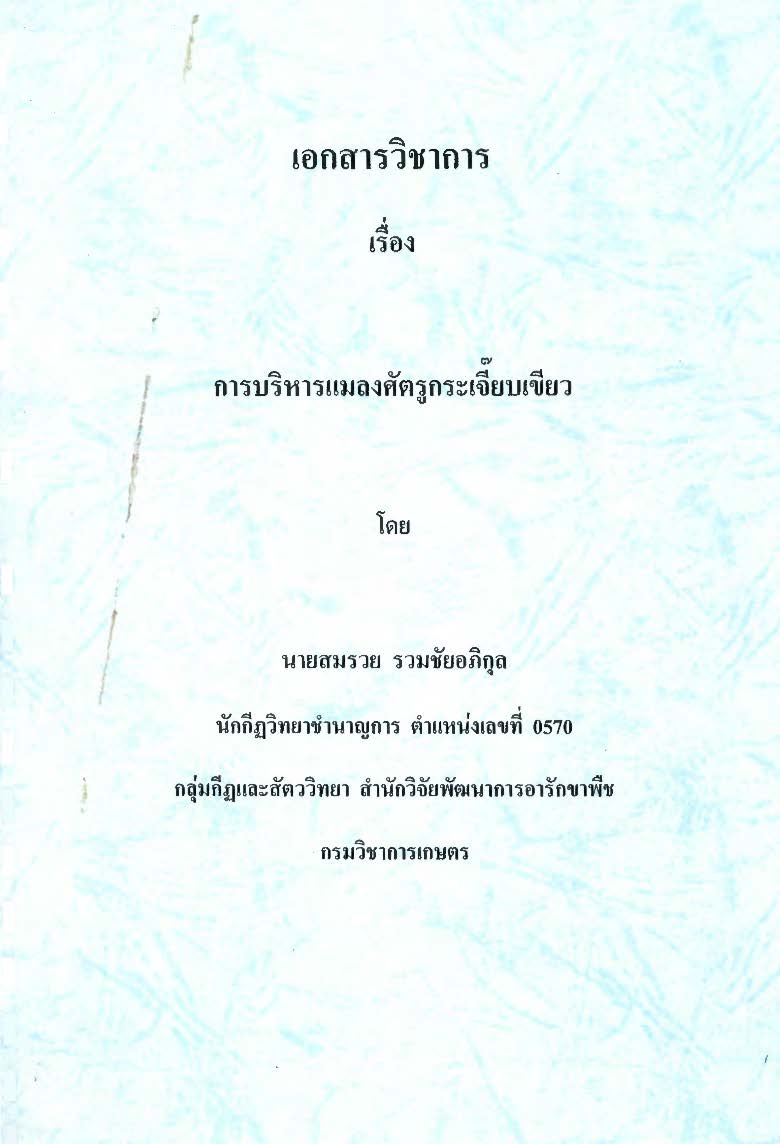 การบริหารแมลงศัตรูกระเจี๊ยบเขียว : เอกสารวิชาการ / สมรวย รวมชัยอภิกุล