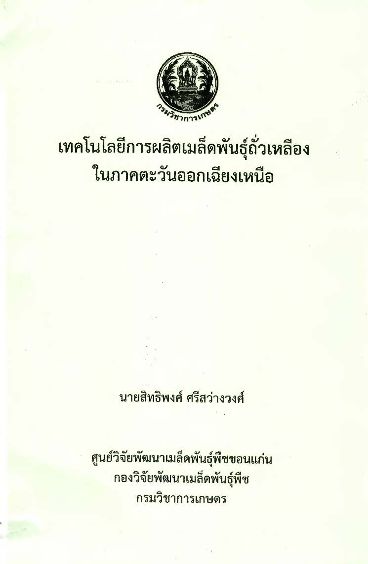 เทคโนโลยีการผลิตเมล็ดพันธุ์ถั่วเหลืองในภาคตะวันออกเฉียงเหนือ / สิทธิพงศ์ ศรีสว่างวงศ์