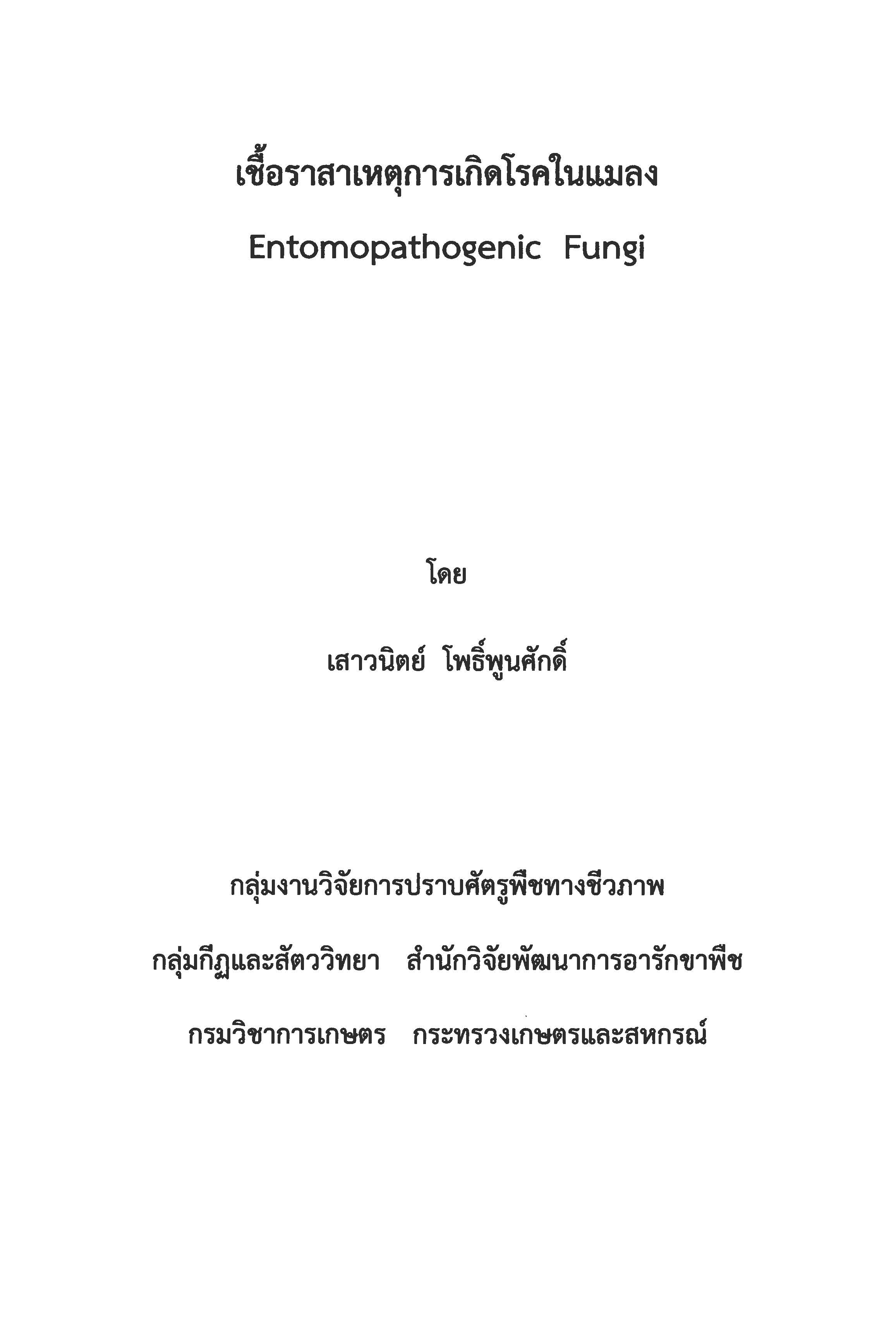 เชื้อราสาเหตุการเกิดโรคในแมลง = Entomopathogenic Fungi / เสาวนิตย์ โพธิ์พูนศักดิ์