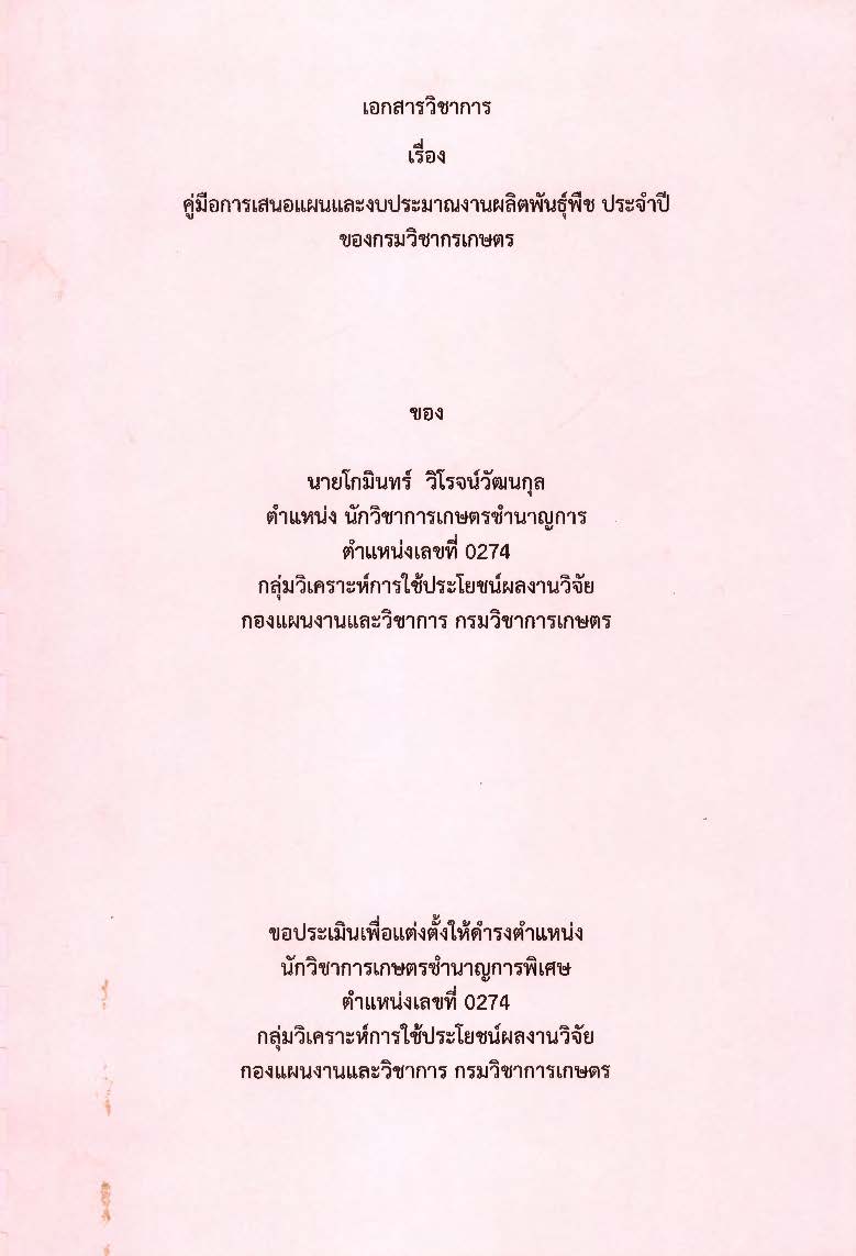 คู่มือการเสนอแผนและงบประมาณงานผลิตพันธุ์พืชประจำปีของกรมวิชาการเกษตร : เอกสารวิชาการ / โกมินทร์ วิโรจน์วัฒนกุล