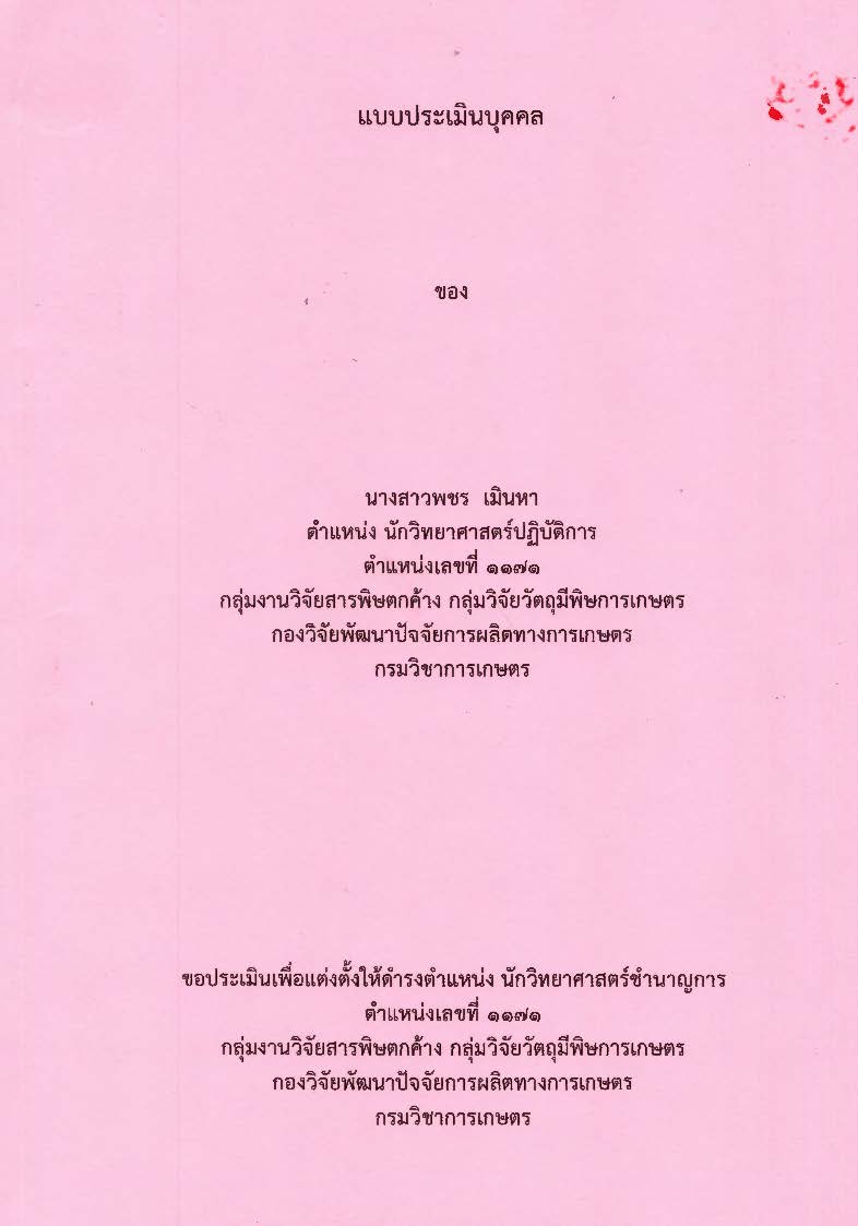 ผลงานฉบับเต็ม ขอประเมินเพื่อแต่งตั้งดำรงตำแหน่งนักวิทยาศาสตร์ชำนาญการ / พชร เมินหา