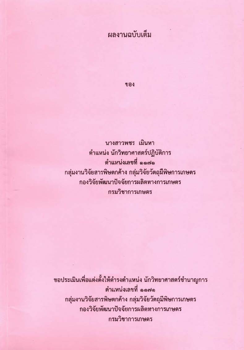 ผลงานฉบับเต็ม ขอประเมินเพื่อแต่งตั้งดำรงตำแหน่งนักวิชาการเกษตรชำนาญการ / ภัทรานิษฐ์ คงมาก