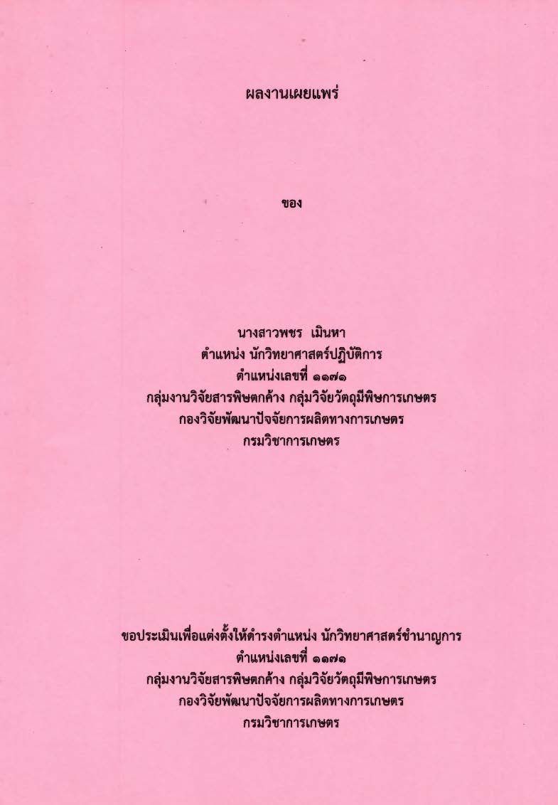 ผลงานเผยแพร่ ขอประเมินเพื่อแต่งตั้งดำรงตำแหน่งนักวิชาการเกษตรชำนาญการ / ภัทรานิษฐ์ คงมาก
